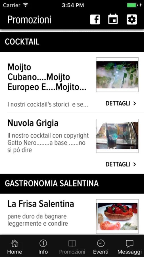 - messaggi di notifica con le nostre offerte, happy hour, aperitivi last-minute;