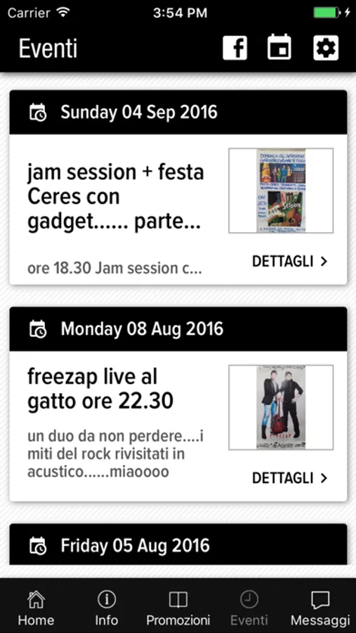 - gli Eventi da noi organizzati settimanalmente;