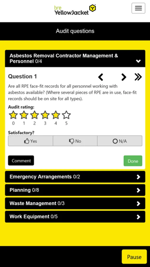 The YellowJacket app gives you instant access to inspections and audit questions, enabling you to record answers and upload pictures on the go.