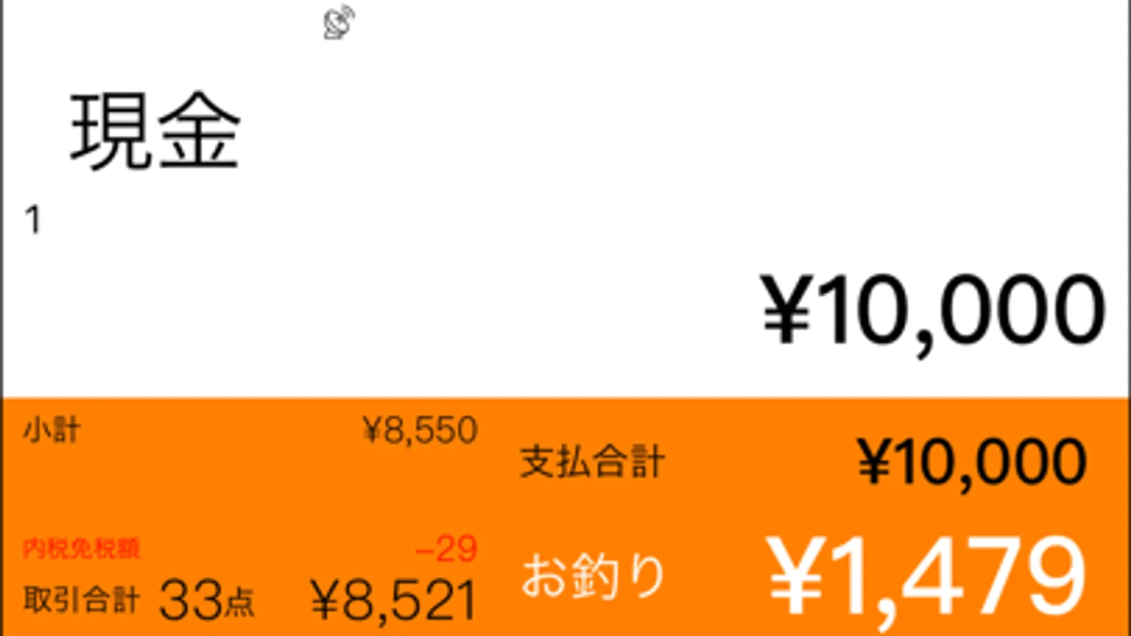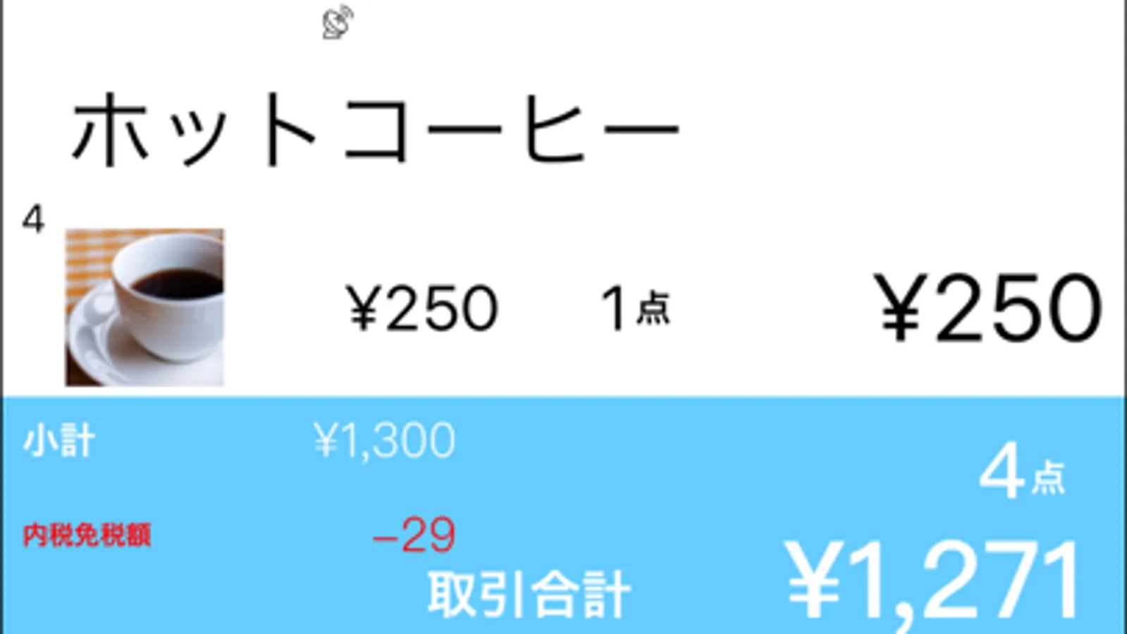 3.本アプリを起動した状態でクラウドPOSアプリの売上を選択すると、連動して購入商品、合計金額、お釣りなどが表示されます。