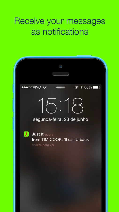 * SECURITY: The Just It does not store your messages. You send messages to your friends and family and they will receive a notification. Simple as that.