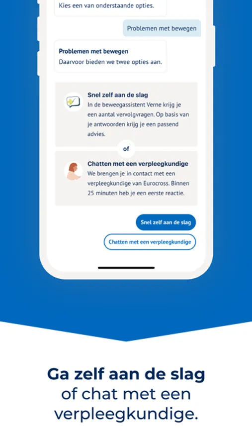 De Zilveren Kruis Wijzer app geeft antwoord op jouw vragen over gezondheid. Heb je bijvoorbeeld huidklachten, buikklachten, vragen over bewegen of zit je niet lekker in je vel? Start een chat via de Zilveren Kruis Wijzer app. Ook als je twijfelt of het nodig is om naar een zorgverlener te gaan. Thuis en op reis. Je krijgt advies en hulp waar en wanneer het jou uitkomt. Overdag, 's avonds en in het weekend.