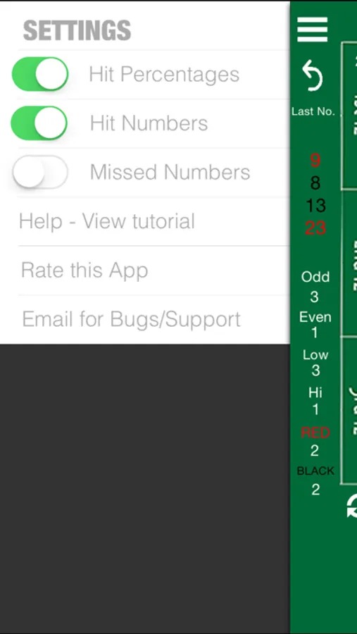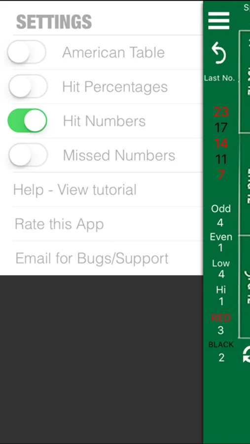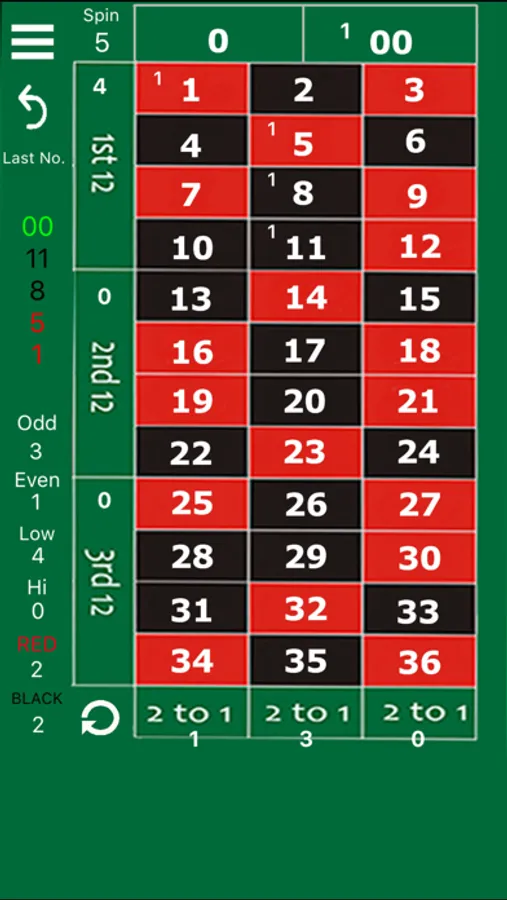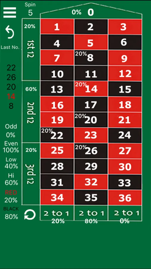 See the percentages or count of Red/Black, Odd/Even, Hi/Low.