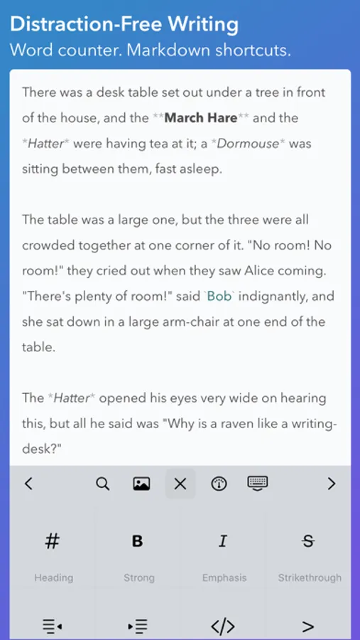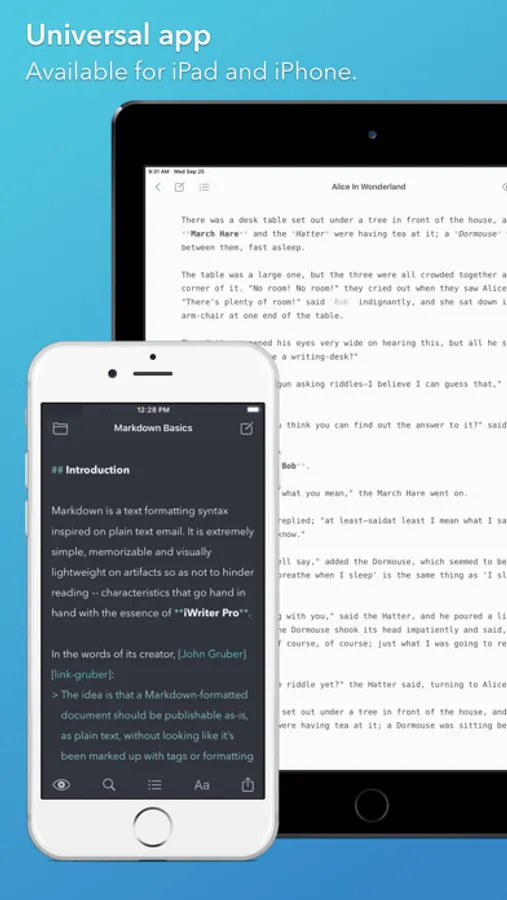 # iWriter Pro is elegant and minimalist text editor with built-in Markdown support. Distraction-free and subscription-free.