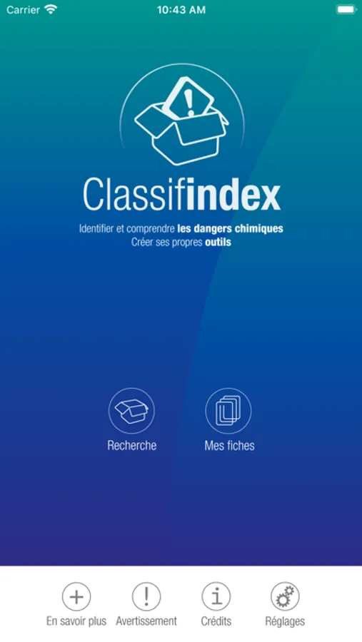 Depuis votre terminal mobile, identifiez les dangers de vos produits chimiques à partir de leurs étiquettes et de leurs fiches de données de sécurité, consultez les éléments de la classification et de l’étiquetage du règlement CLP, créez et enrichissez vos propres fiches, exportez et exploitez librement votre fichier.