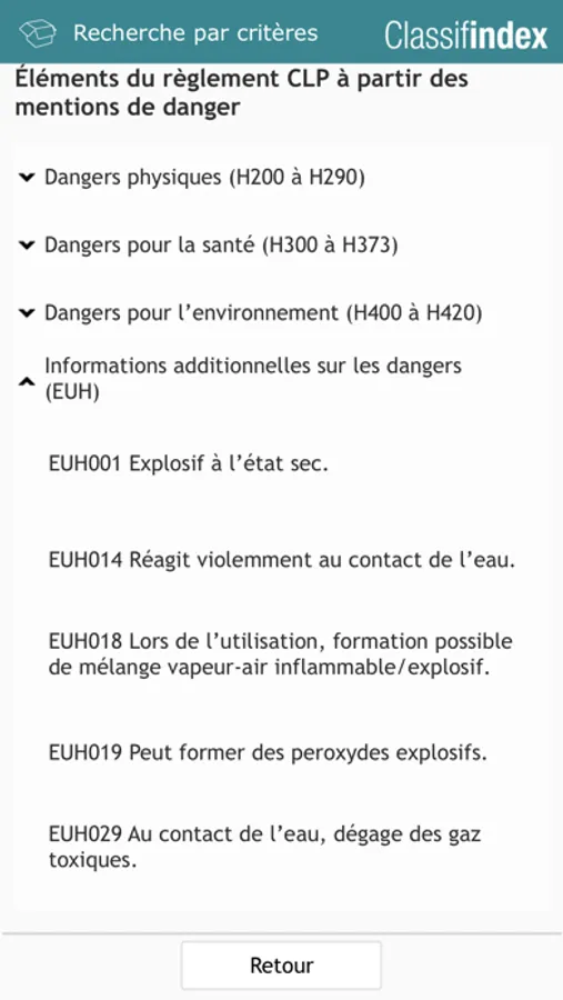 En répertoriant l’essentiel des éléments d’étiquetage du règlement CLP (pictogrammes, mentions de danger, classes et catégories), Classifindex constitue une ressource documentaire sur la nouvelle classification des produits chimiques.