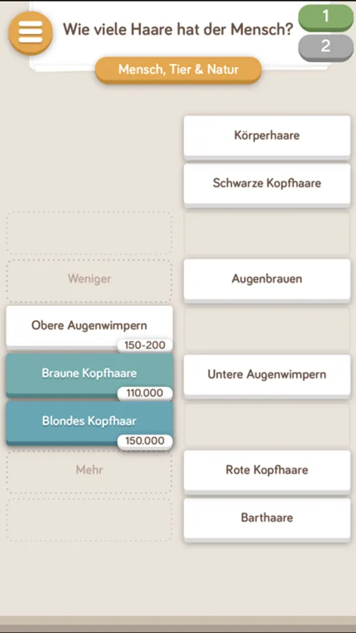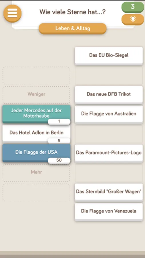 • Rot = Falsch: War die Lösung falsch, wird sie rot - und vom Spiel automatisch an die richtige Stelle gesetzt.