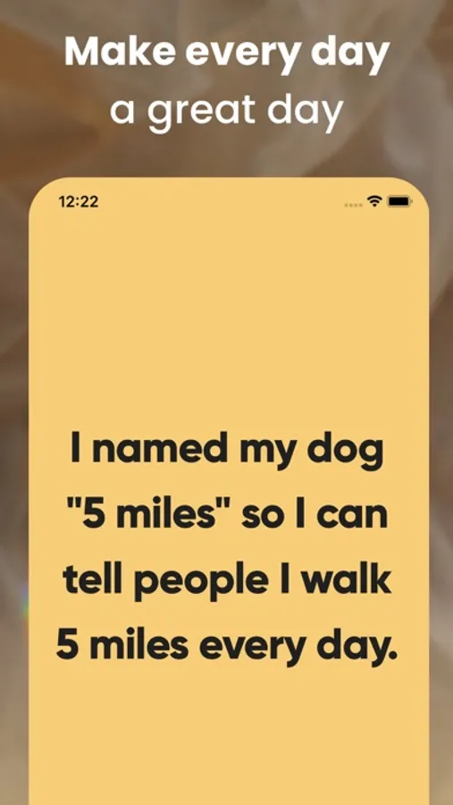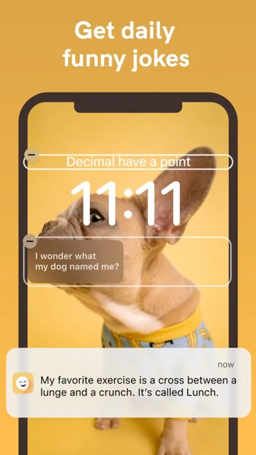 Feeling rundown? Set how many times a day you would like to receive joke notifications on your phone. Be surprised throughout the day to receive a laughing boost. It is perfect for taking the stress out of a moment. Want even more? Then add the Today widget to your device and laugh every time you see the Today view!