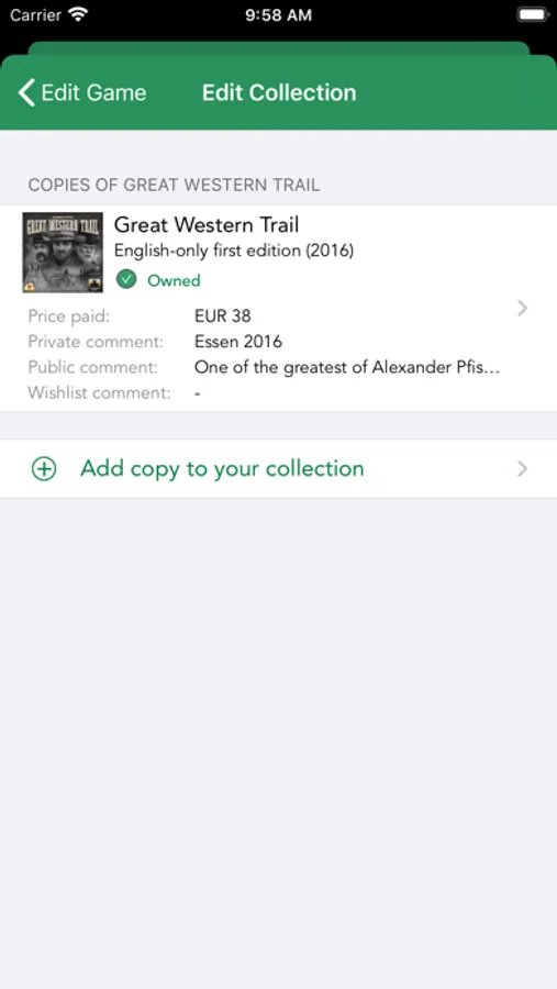 - Set status to Owned, Wishlist, Want to play, and much more.