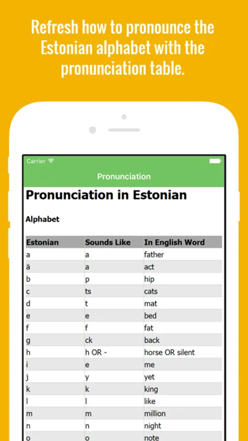 Refresh how to pronounce the Estonian alphabet with the pronunciation table.