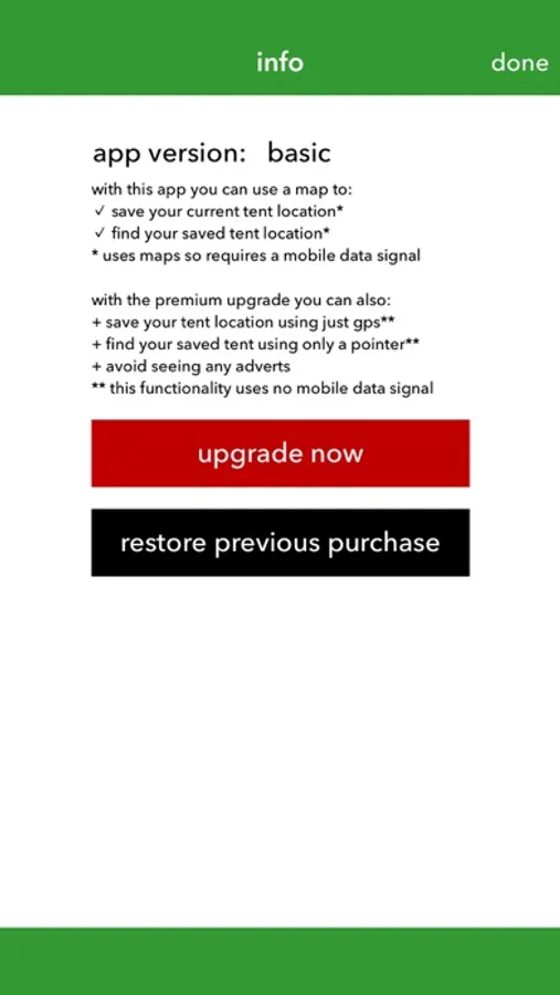 find my tent is ideal for camping trips and music festivals. It's an easy to use app designed to help you locate your pitched tent. All you need to do is 'save' the location of your tent when you pitch it. Go exploring and when you're ready to return to your tent sometime later simply click 'find'.