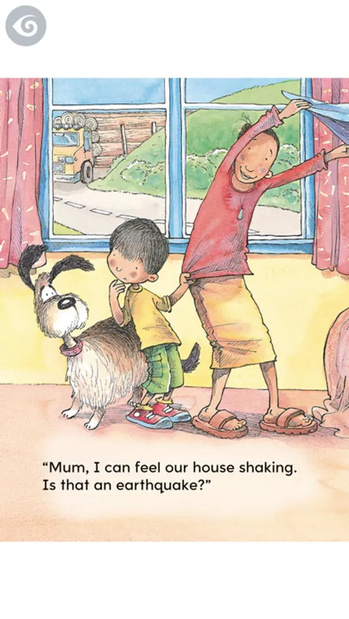 A young boy wonders anxiously whether the movements and noises around his home could be an earthquake, and then, suddenly an earthquake does happen. The story incorporates a recount and an explanation and is told entirely through dialogue. There are safety instructions inside the back cover.