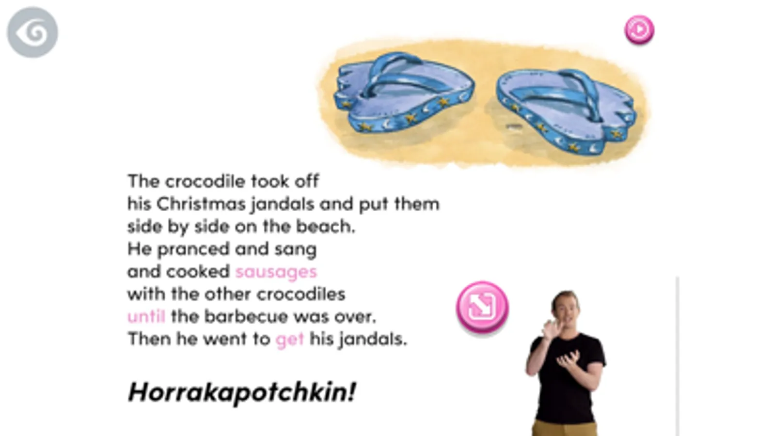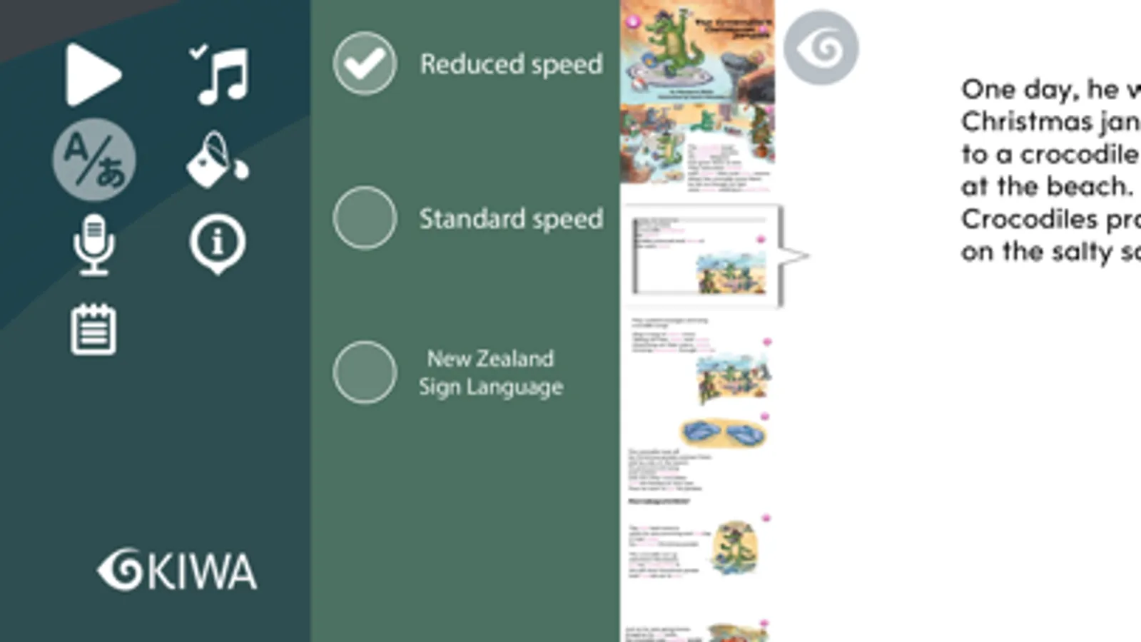 This digital book contains text and audio in English and a video readthrough and vocabulary in NZSL