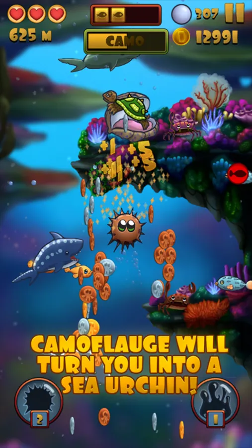Conceal yourself in a thick cloud of ink, and watch as the monsters just swim right past you. Or take fate into your own hands with the Sea Urchin Camouflage which allows you to knock out the monsters!