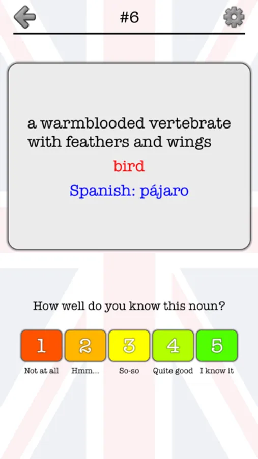 * Flashcards: word - definition - Spanish translation.