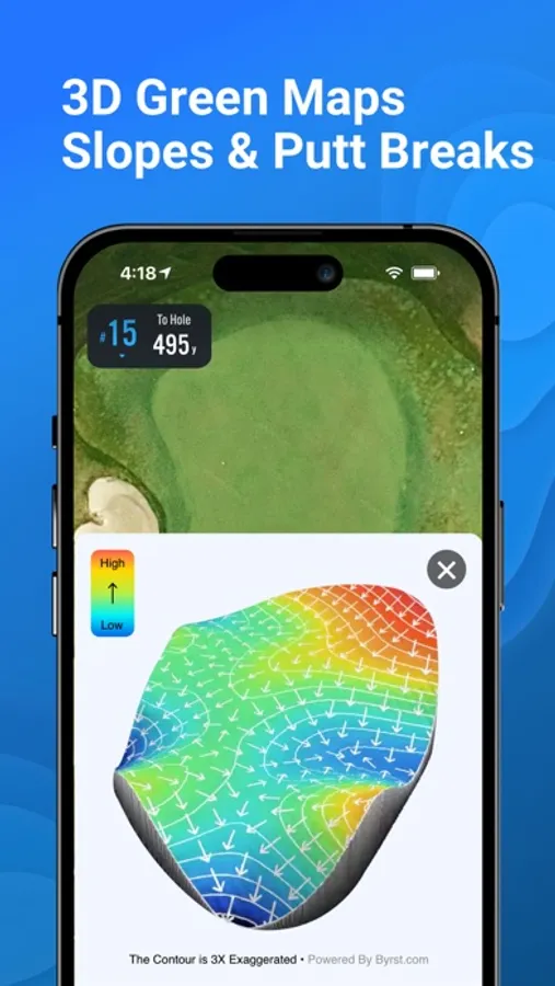 -3D GREEN MAPS: Read putt breaks and see detailed slopes of the green for approach shots to help you hit it close.