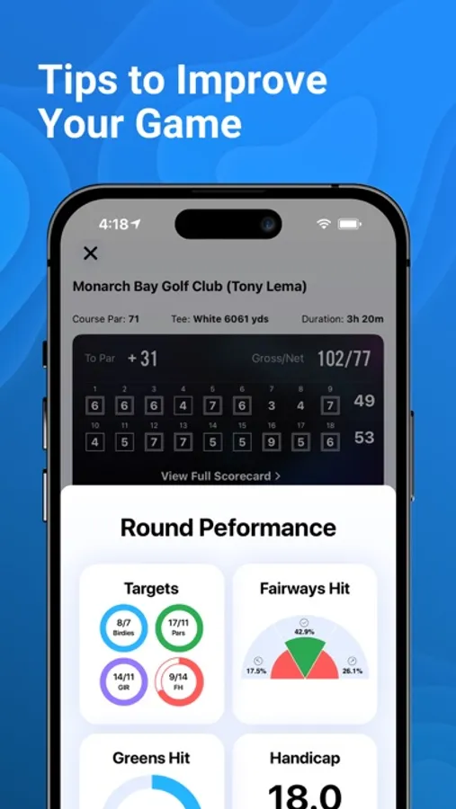 Make the most out of your practice sessions with 18Birdies. Compare stats with other players in your skill level to help you figure out how to improve faster.