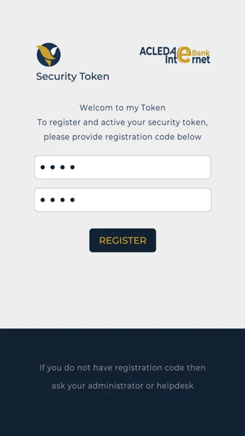 Please request registration code from ACLEDA Bank online banking to get started after installing the token on your phone.