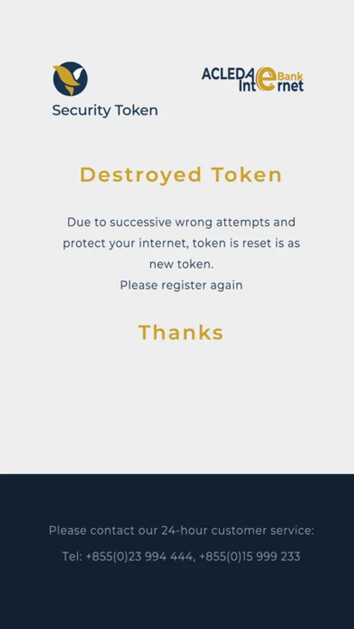We welcome your comments and feedback and if you need further assistance, please email us at token.help@acledabank.com.kh.