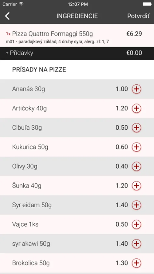 + Možnosť výberu prídavkov