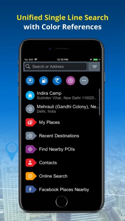 • Varied POI, down to the house no., also locate Petrol Pumps & Parking Places along the route.*