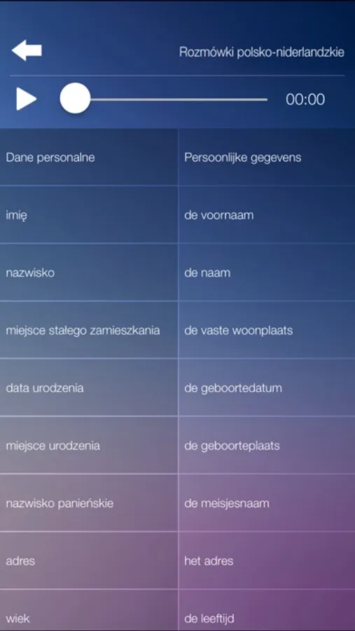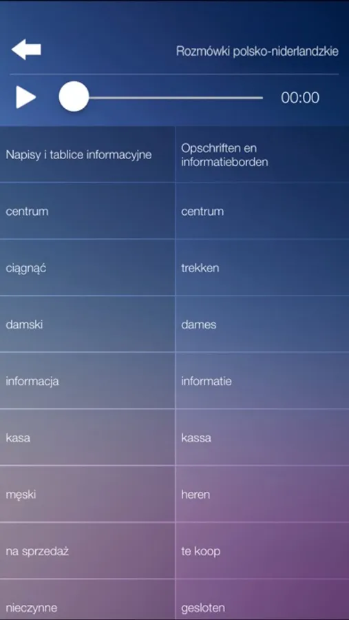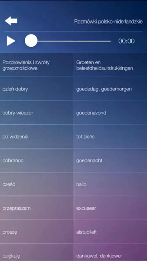 Wszystkie zwroty, wyrażenia i rozmówki - oprócz tego, że wyświetlają się na ekranie - są również podane w formie audio.