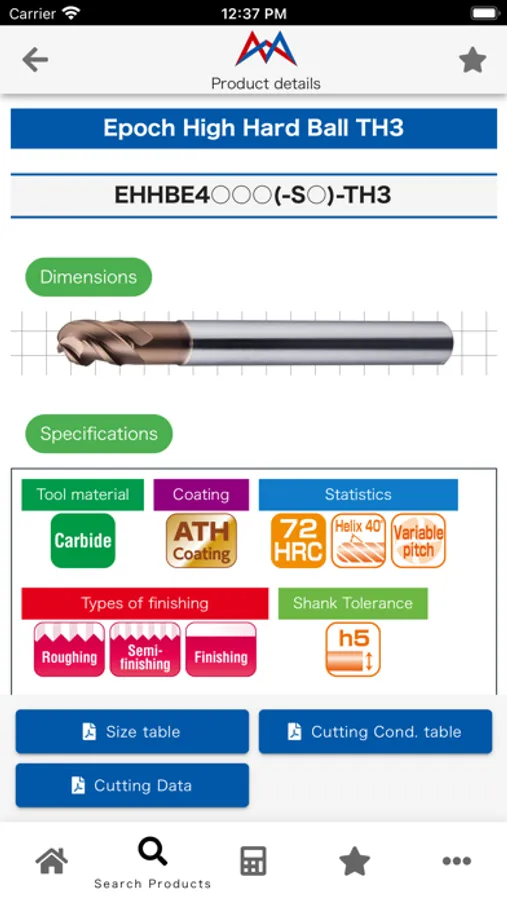 * Please use "TOOLSEARCH" program for advanced search from tool diameter (compatible with PC / tablet terminals).