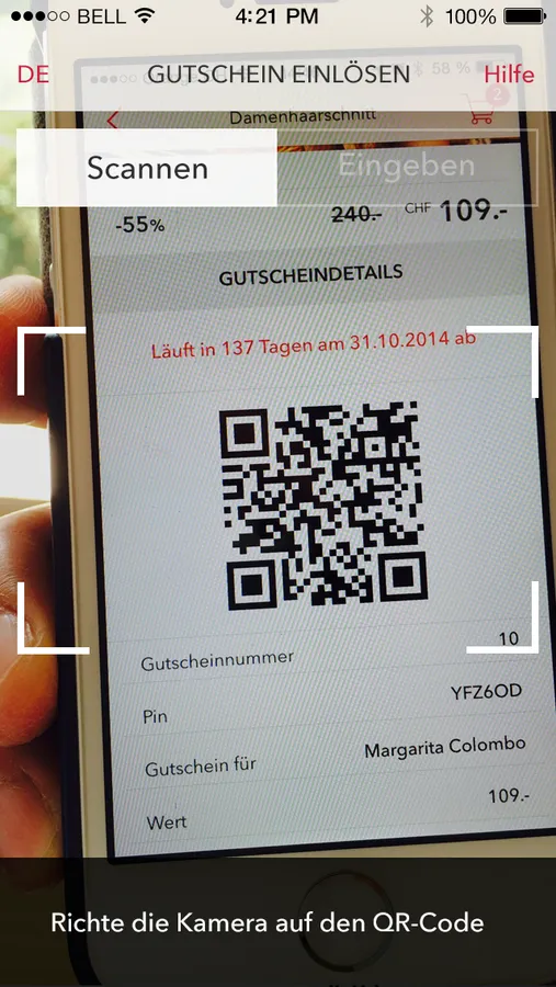 The new DeinDeal Partner app enables you to redeem your customers' coupons in a simple and efficient way. All you have to do is scan the QR code using your smartphone to get immediate access to the coupon's status.