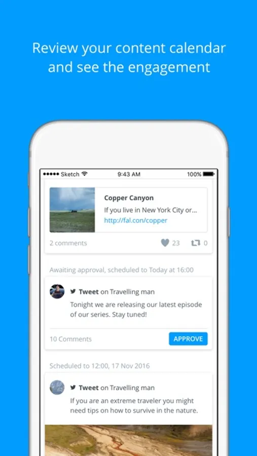 Use Hub to review your content plan, check for engagement and collaborate with team mates on future content.