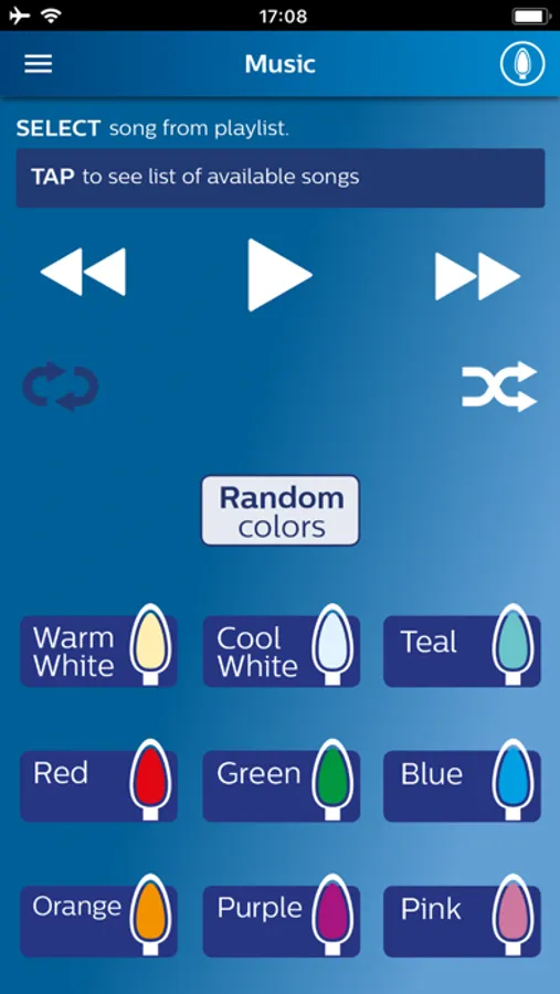 • Select music from your own device and the lights automatically flash and change colors.