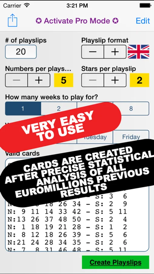 The result is the generation of playslips fine tuned to the current EuroMillions results.