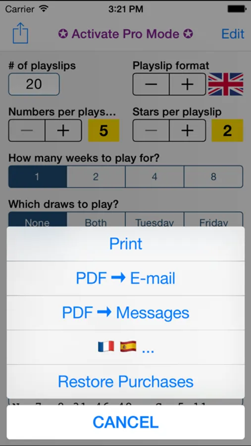 * Because we were unable to get blank playslips from all countries where EuroMillions is played, this functionality is just working, for now, for the following countries: England, Ireland, Belgium and Portugal. If you want this to work for your country, please mail us a few blank playslips (contact our support for more informations and address).