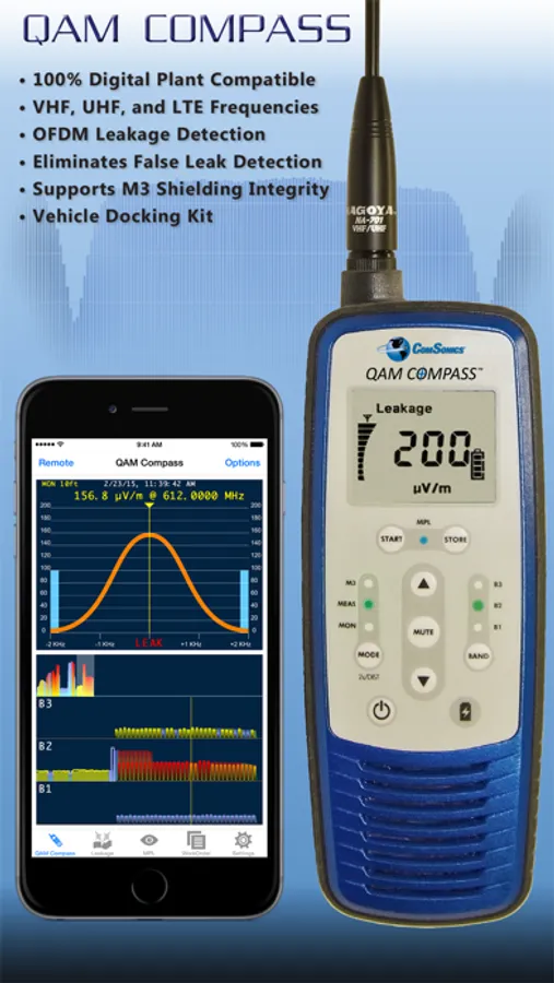 ComSonics’ has integrated the Compass Signal Leakage Platform with the Mobile Problem Locator (MPL). The MPL function provides the cable telecommunications user with the ability to record various types of issues found in the cable plant and other utilities such as power, telephone, gas, and water determined by visual inspection. The new Compass functionality adds a number of options for identifying, storing and forwarding signal leakage to the ComSonics' Genacis server as well as supporting job order maintenance. The CompassMPL app supports the ability to submit signal leaks, construction issues and work order closeouts for signal leakage type problems. Provisions are included for recording the location of cellular towers to help combat LTE interference issues.