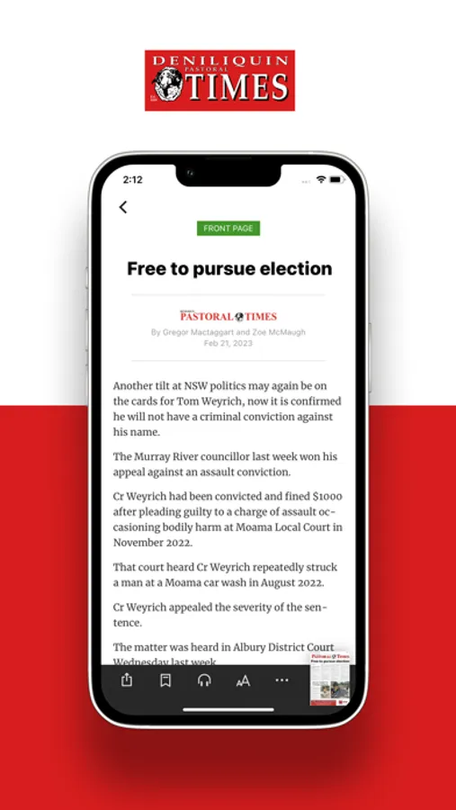 Looking to have Deniliquin Pastoral Times at your fingertips? Then look no further than Deniliquin Pastoral Times app from PressReader. With this app all sections are presented as full-content digital replicas, in their original layout. You can subscribe to the epaper through this app and download the publication wherever you are. Flip pages, pan and zoom in to view any page, article or photo in stunning clarity.