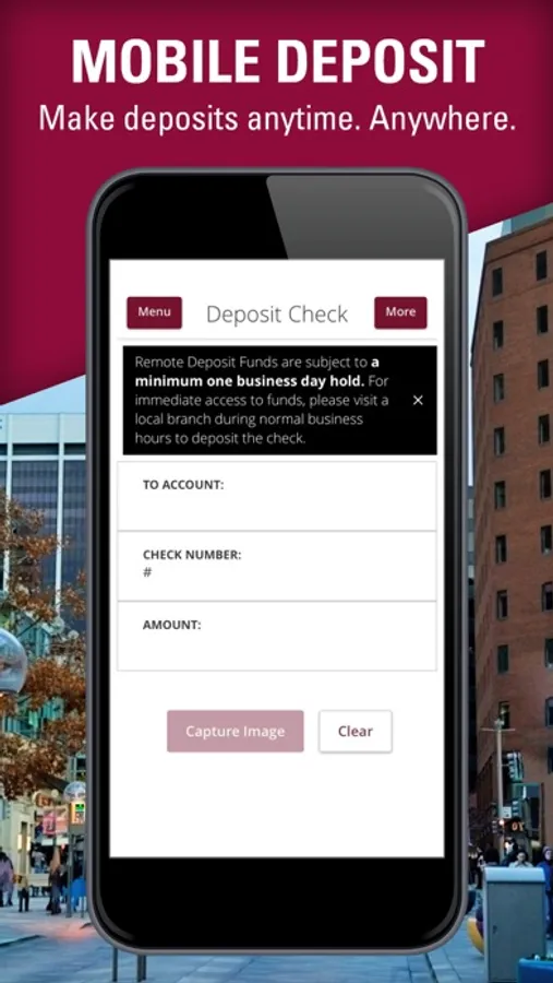 • Remotely deposit checks using your phone’s camera.