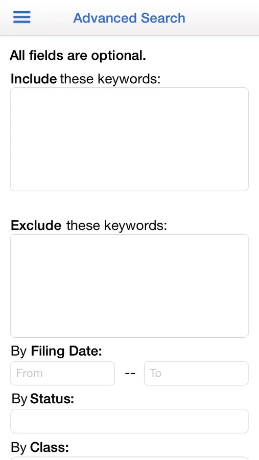 The app is completely free and allows for both basic keyword based searches as well as advanced class, registration date, serial number, company name and correspondent based searches.