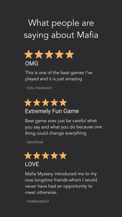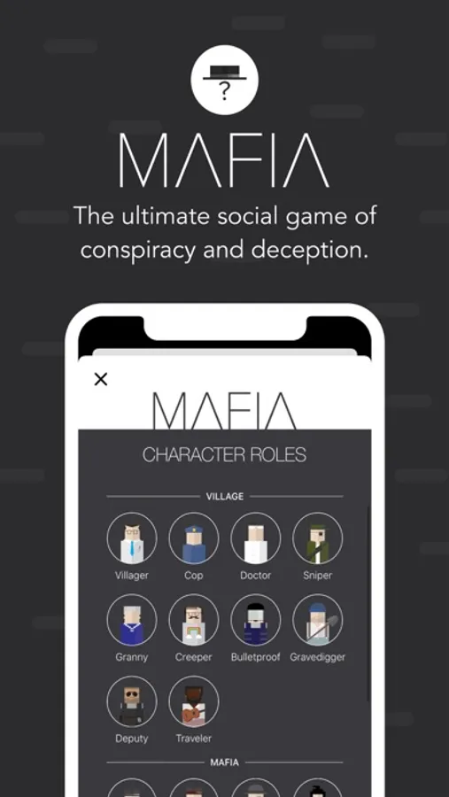 With Mafia Mystery there’s no need for a narrator, so jump in and start playing games! You can create games with up to 24 players, private mode, 20 unique roles, and a customizable game length.
