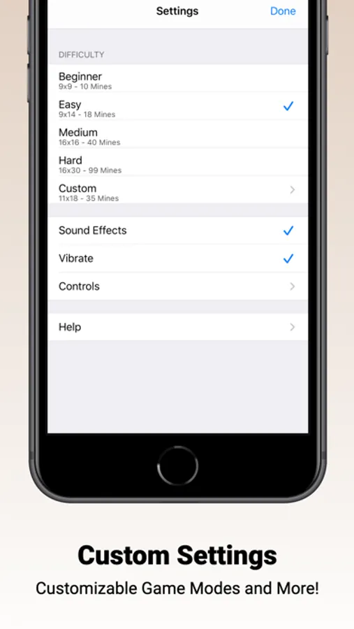 Minesweeper features all the original rules of Minesweeper such as a safe first tap, flags/question marks, original difficulty levels, and proper mechanics.
