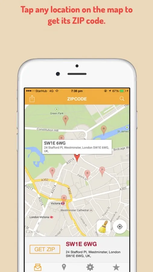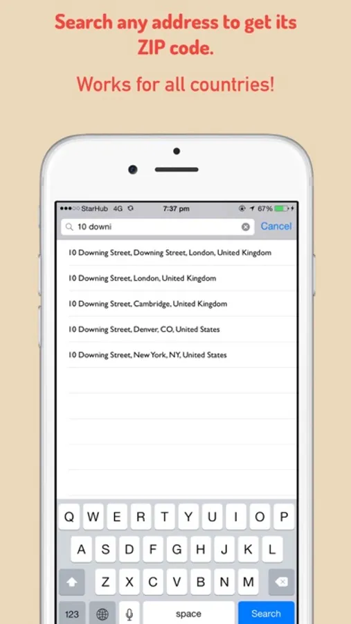 •Get the ZIP code of any place in the world by tapping its location on the map.