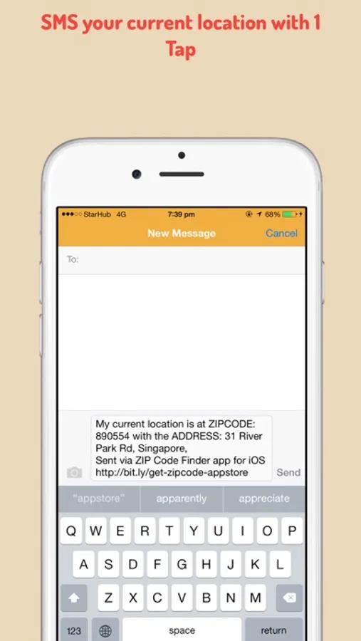 •SMS the postal code and address from the app with 1 TAP.