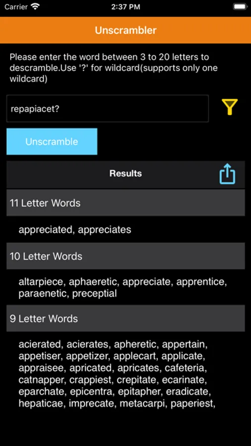If you find yourself stuck in solving the jumbled words,then Unscrambler is the App for you.