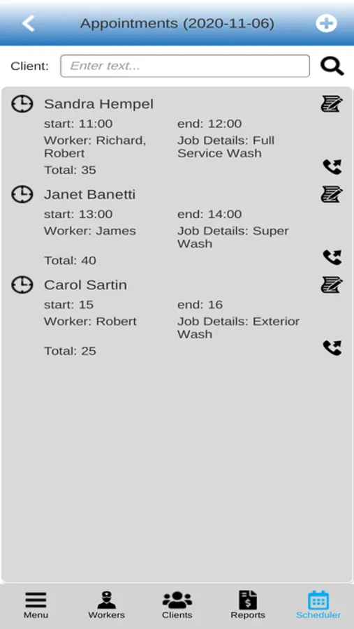 The clients section of the software can store in all services provided to a client along with client information including phone, address, email, etc. personal profiles of all clients help in retrieving all past data whenever a repeat job is being performed. The program also allows making of calls directly to the any client.