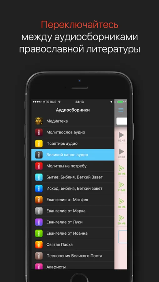 ・Легкое переключение между православными тематическими аудиосборниками через выпадающее меню;