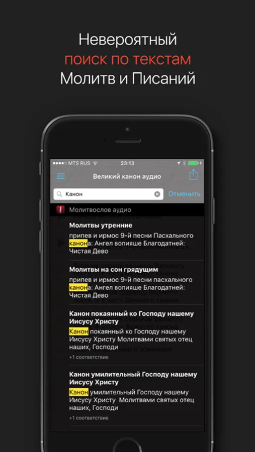 ・Сквозной поиск по всем сборникам поможет найти нужный фрагмент и начать воспроизведение именно с него;
