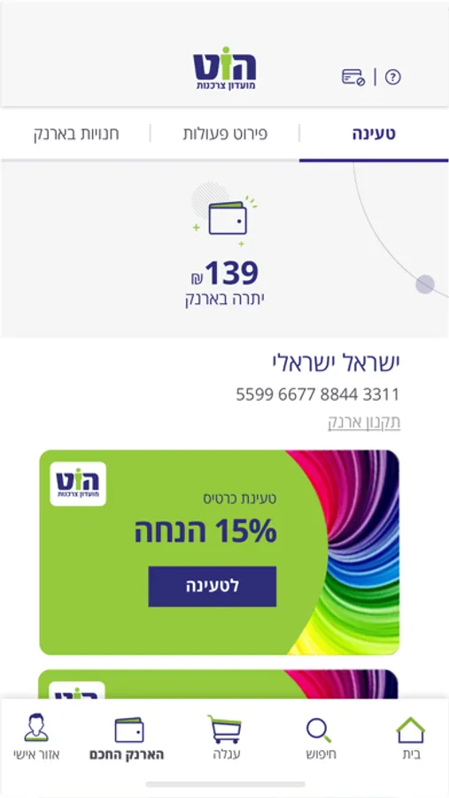 • ארנק חכם דיגיטלי – 15% הנחה ברשתות ומותגים שאתם אוהבים. בוחרים את הרשת, מטעינים את הכרטיס ויוצרים לשופינג חסכוני
