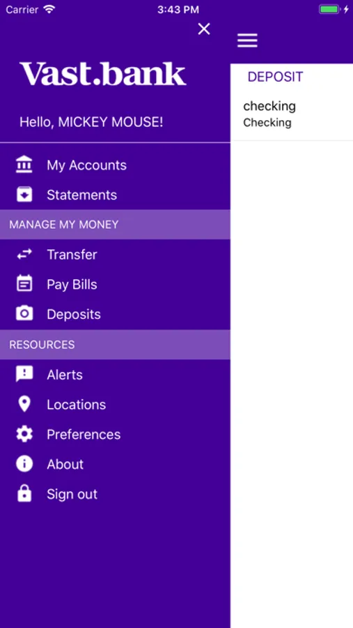 Vast Mobile Banking supports various account types including checking, savings, money markets and loans. Regular account service charges apply. Network connectivity and usage rates may apply. Contact your wireless provider for more details.