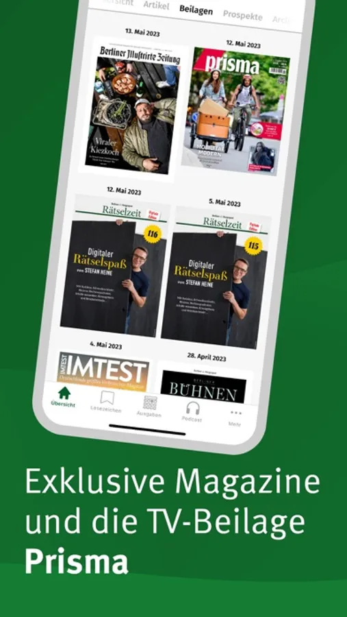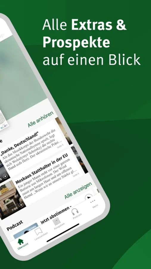 - Podcast: In der E-Paper-App finden Sie eine Vielzahl redaktioneller Podcasts – vom täglichen Nachrichtenüberblick bis zu vielen Spezialthemen.