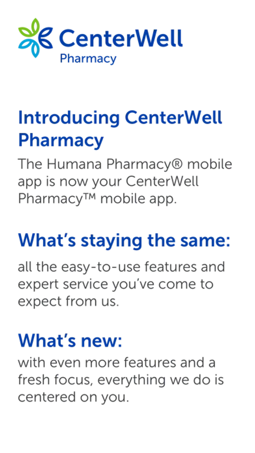 The new CenterWell Pharmacy™ mobile app makes it easier to keep track of your prescriptions. The new app has the same easy-to-use features, plus upcoming features focused on you.