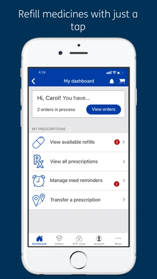 - Easily refill your prescriptions as soon as you sign in, straight from your home screen.