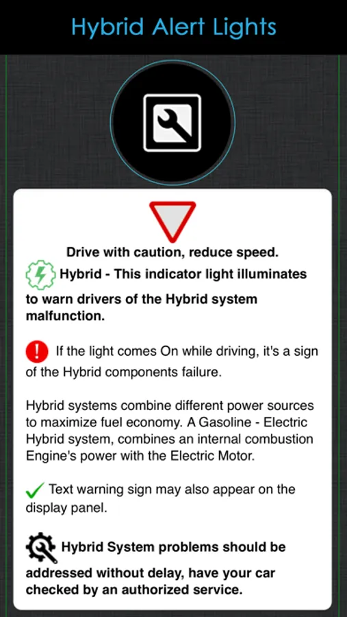 App features 537 dashboard warning lights for all car brands and models, with a detailed description and an explanation.